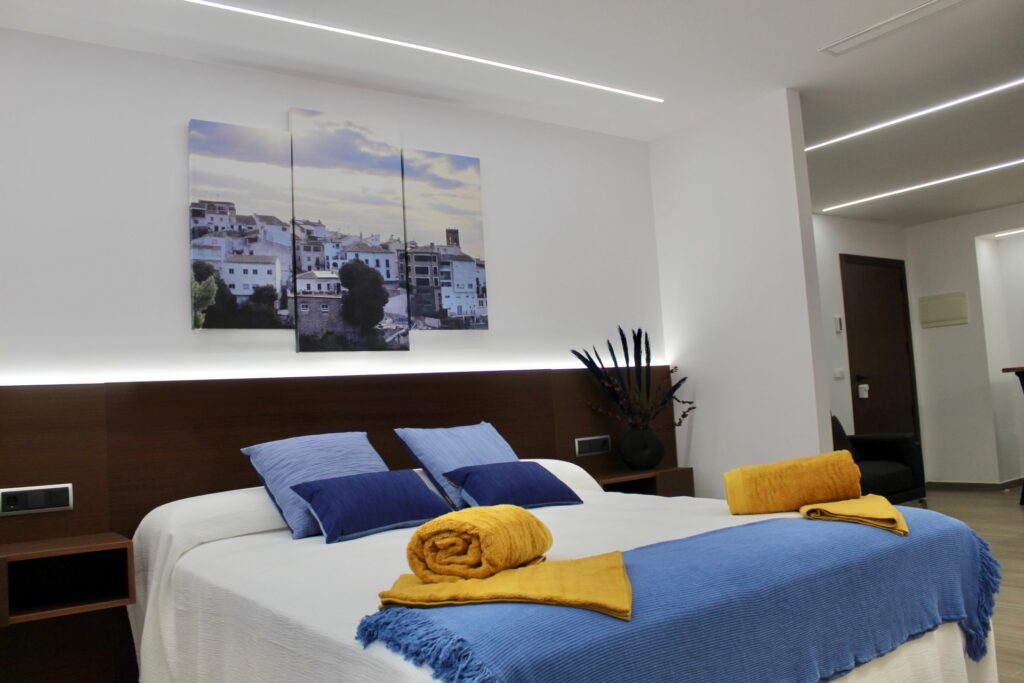 Disfruta de nuestra habitación Marina, con diseño elegante, cama de calidad, tecnología de última generación y un ambiente cómodo y relajante. ¡Tu descanso perfecto te espera!